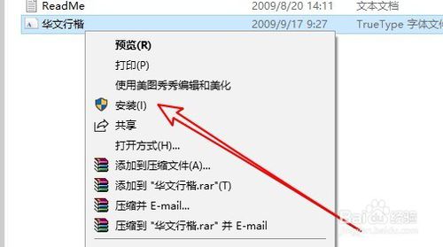 把下载的华文行楷的安装文件解压到本地硬盘以备使用。