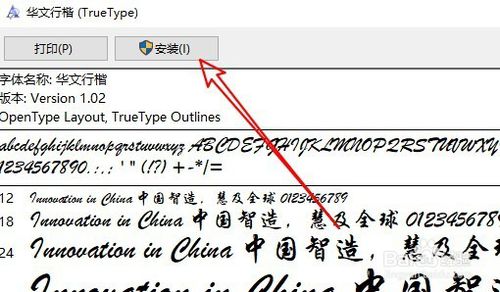 这时就会打开华文行楷的预览界面,点击右上角的“安装”按钮就可以了。