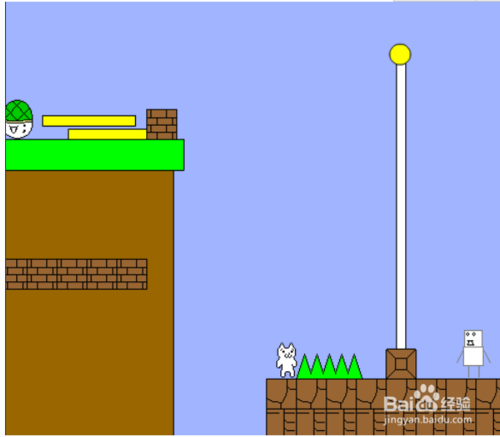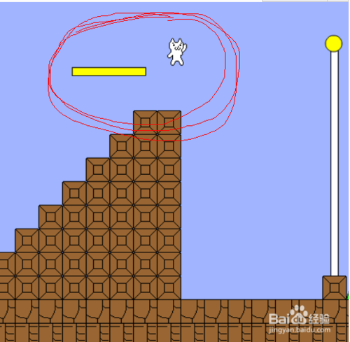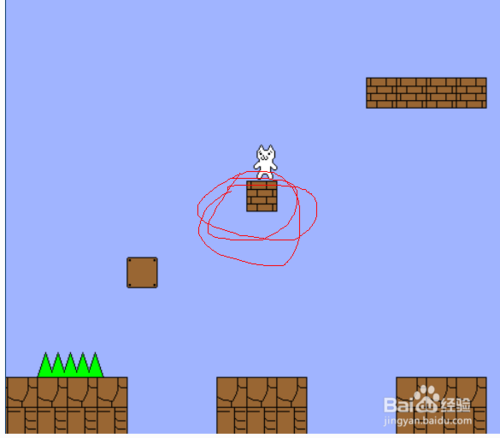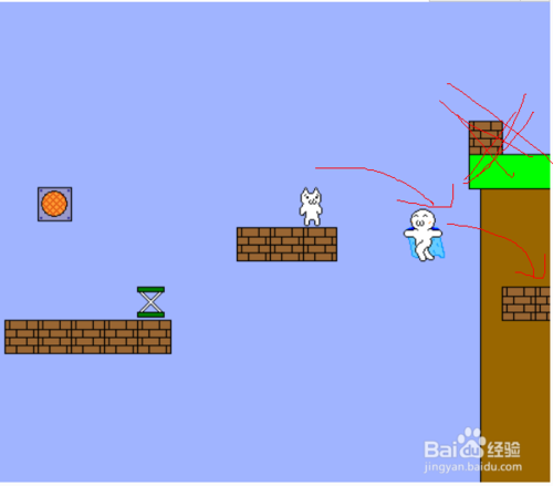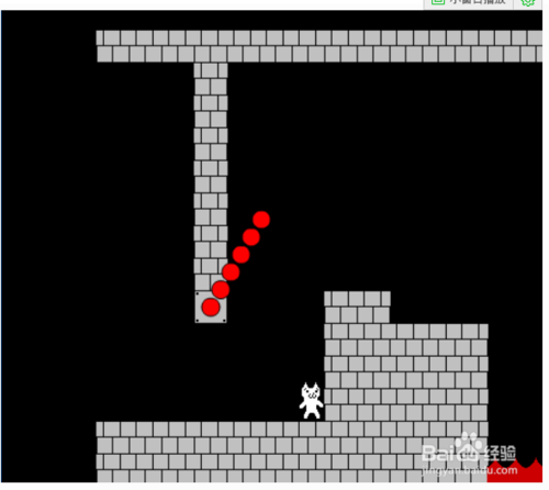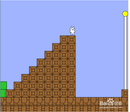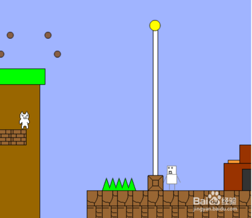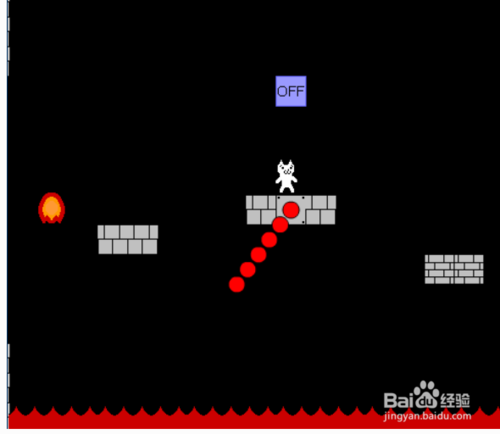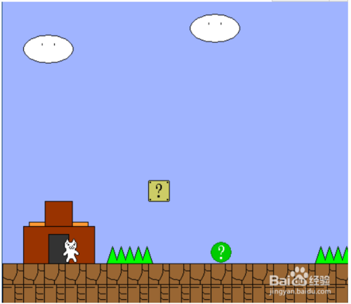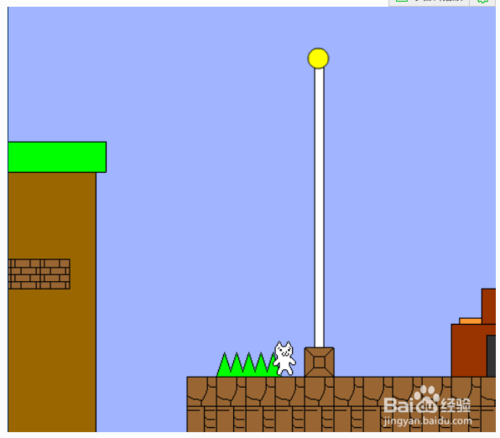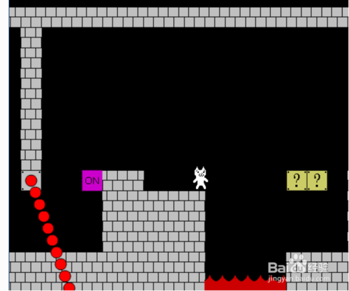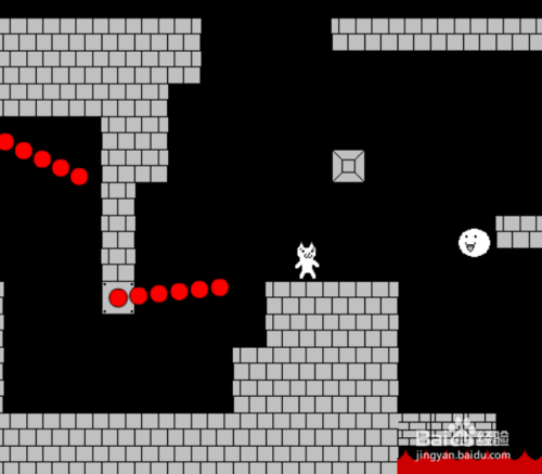 五个“800度流石”那里一般方法过不去,只有等死。唯一的破解方法是利用Bug:先向右走一点,等待左边竖直向下延伸的几个砖头与屏幕最左边只差0.6~0.8个格大小时,回到最左边,一直按“上”,猫就会弹到屏幕最顶端,然后向右跳吧!反正在最上边,死不了。这样主角就会发现这关没有终点了。