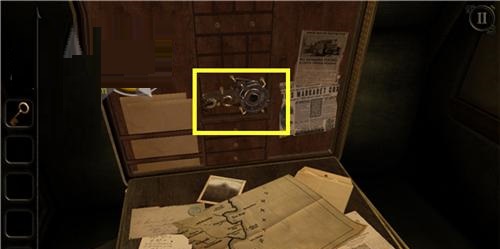 完成打开这个机关,在里面看到信封和拿到盒子。(刚刚说的左右边都是以这个机关为中心。)