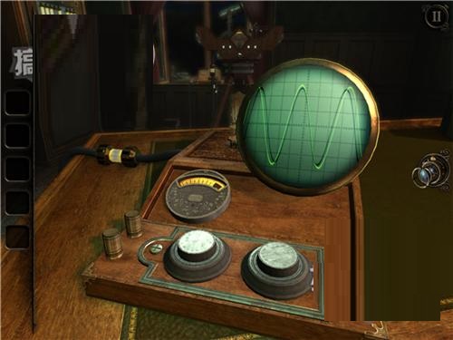 旋转左右两边的钮,让绿线与后面的黑线波动一致即可,机关启动看到墙壁裂开第一章结束!