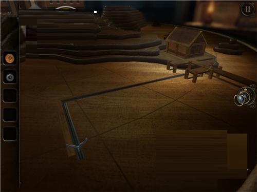 接着焦点便转移到一个灰色的遥控台上,在那里你可以拾取到一把钥匙,那是用来开启房子地板锁,以获取遥控台缺失的摇杆,并打开水闸引入活水转动水车。随后把找到的摇杆放置到遥控台上,便可控制一个悬挂在前方的沙袋。先让沙袋向左移动,在轨道的转折位放下沙袋,再提上拉前,又在转折位放下沙袋。在这两个动作之间,游戏会通过动画提示你此举动其实是在开启一扇门,每一次放下沙袋,你眼前的门都会开启部分锁门,直到你完成放置沙袋的全过程。