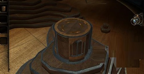 获得金条后,用一开始从金字塔里获得的小铁棍和红木盒里装着的不规则转轮,放置于遥控台隔壁的炼金炉开关中,然后转动齿轮直到炼金炉开启为止。
