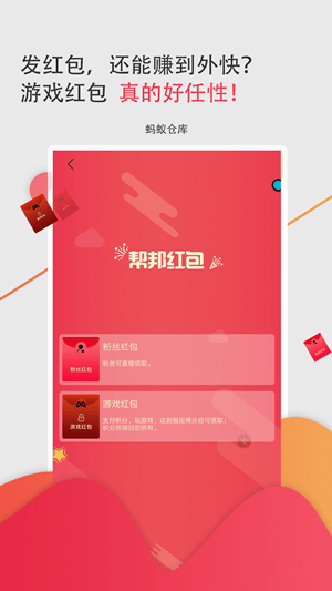 蚂蚁帮邦app是一款通过娱乐化社交+娱乐化电商的方式帮助用户赚钱的app!蚂蚁帮邦app全新的社交方式能够有效的促进网络环境中人于人之间的关系;在蚂蚁帮邦app里可以和好友一起进行别样的互动,还可以在好友的协助下无偿的获得一些意想不到的东西!