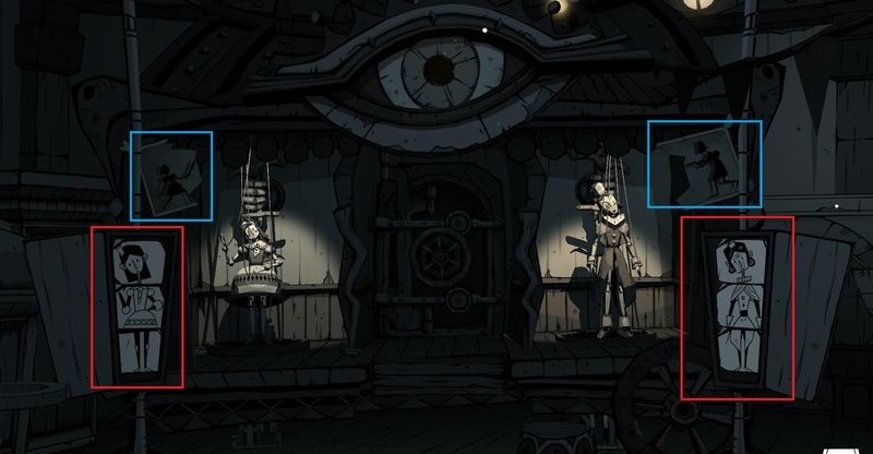 你会发现舞台上少了两个木偶,装上去应该就能开动机关了。