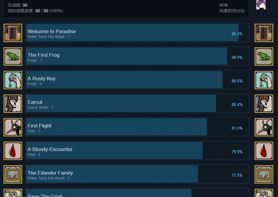 1,50个游戏中的成就