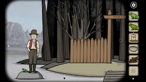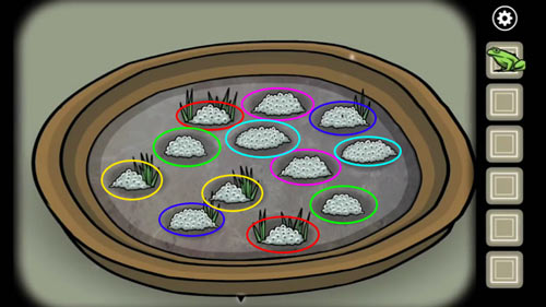 2.进入树林2,调查右侧的水池,将相同形状的物体配对,完成后可以在水里得到第二只青蛙。