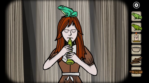 9.到树林3进入房屋,将四只青蛙丢入锅里,放上木柴用蜡烛点燃,煮好后用碗装青蛙汤。