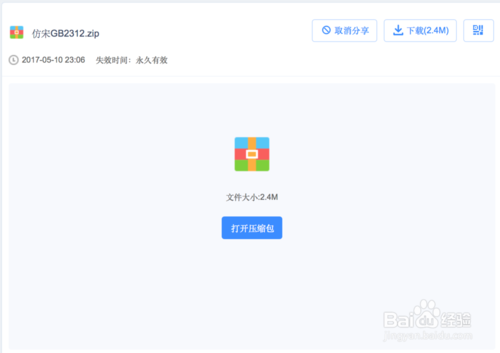 在起点软件园下载仿宋GB2312字体压缩包并解压缩