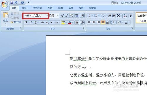 打开一个文档,如下图所示,可见默认字体为“宋体”