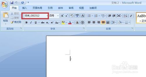 新建一个文档,可见字体已更改为“仿宋 GB2312”(图中红框)