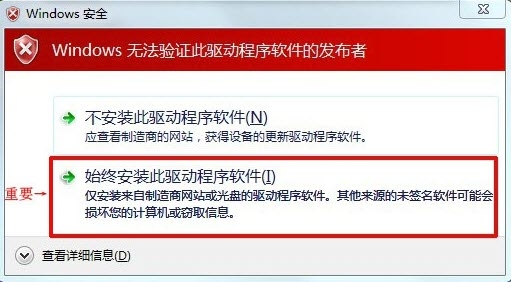 在驱动安装中,如果弹出windows安全对话框,提示无法验证驱动程序软件的发布者时,请点击始终安装此驱动程序软件,否则会安装失败。为了访问手机内部存储,请执行下列步骤: