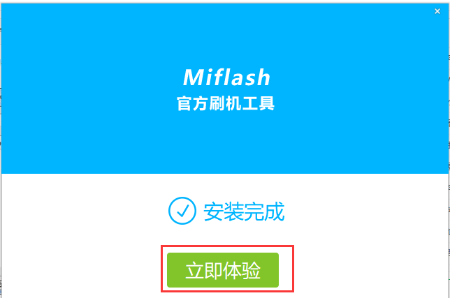 4、Miflash刷机工具安装完成,出现下图界面就表明在电脑上已经成功安装了该软件,我们点击界面的立即体验就可以关闭安装界面打开软件来使用了。