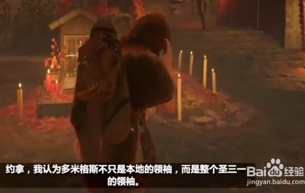 逃出神庙后,继续前行遇到圣三一的多米格斯,匕首被夺。
