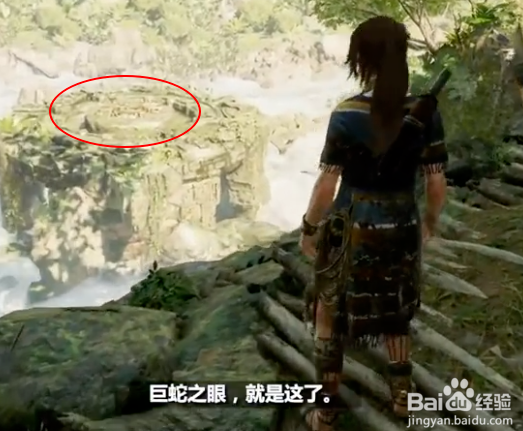 经过一段潜水、跑酷和攀爬,劳拉攀登到一处平台进入剧情。