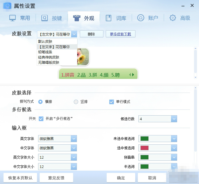 3、选择自己喜爱的皮肤;现在还有不换输入法皮肤的童鞋吗?