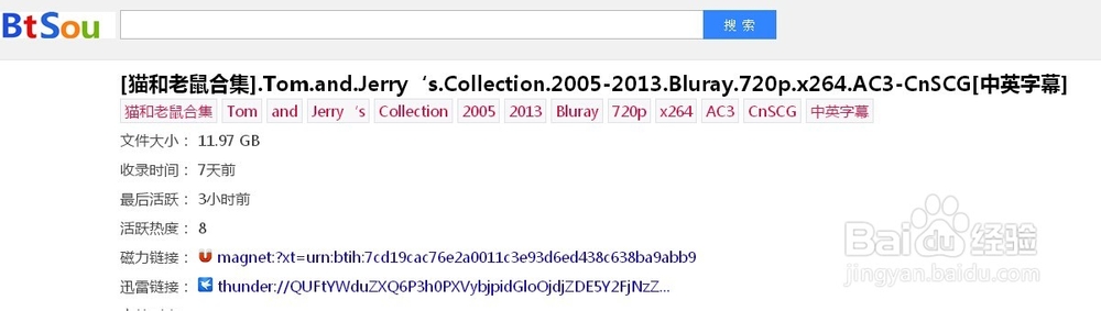 接着就可以看到“磁力链接”地址啦,点击就可以使用Bt下载工具进行下载。