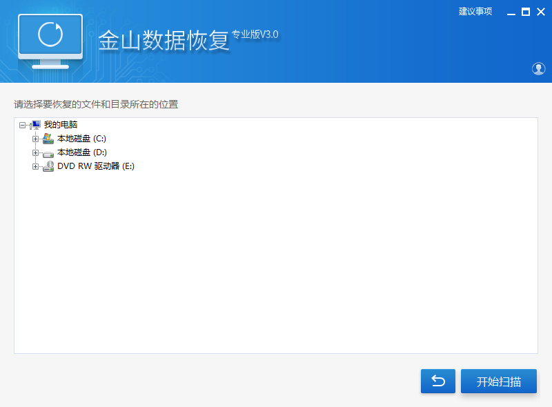主界面打开以后,在左侧选择扫描方式,右侧选择要扫描恢复的磁盘。分别选择不同的扫描模式,可以实现不同的还原效果。数据丢失深度恢复----------恢复因磁盘磁道受损的文件。
