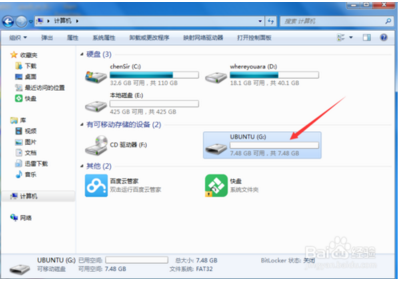 1、如图示,我们可以看到我们的U盘里面没有数据,我们点击打开。