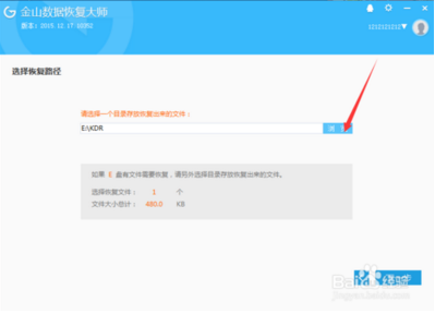 10、然后选择你需要将这些文件恢复到的位置,当然不能是原来的位置。