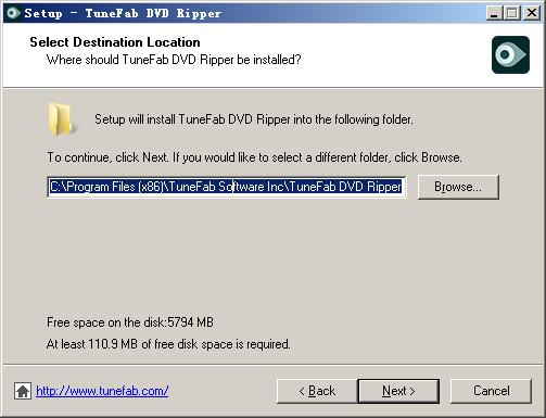 4、选择软件安装目录,默认为“C:\Program Files (x86)\TuneFab Software Inc\TuneFab DVD Ripper”