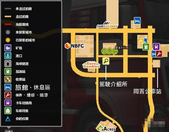 如果您在拖运路程中经过并点亮那个城市在您的地图中,您就能接取该城市的快速任务,但选择性要看您技能的点选,有点选解开的类型才能接取。地图上很多城市裡都会有 "?" 的符号,那代表著未被您发现的卡车经销商与司机介绍所,下次不妨多走一小段路去发现它们吧!