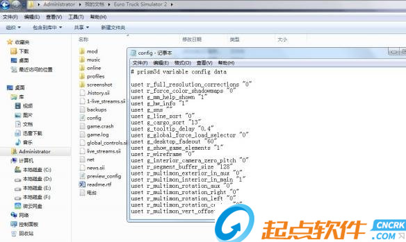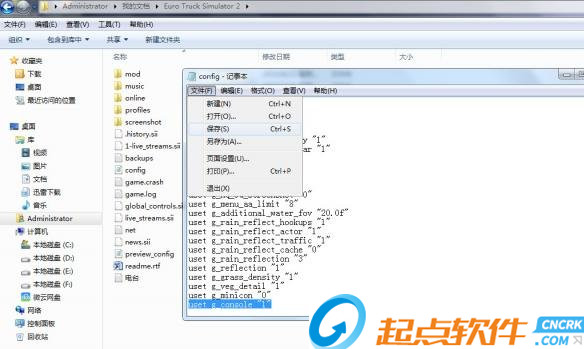 用记事本方式打开X:\Documents(我的文档)\Euro Truck Simulator 2\ 下面的 config.cfg 文件