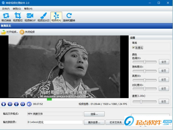 支持多种优化,灰度化、色调、饱和度、亮度、对比度、速度等。