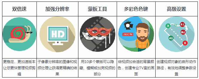 支持添加滤镜特效,特别是有Instagram风的滤镜,具备高级视频色彩校正功能;
