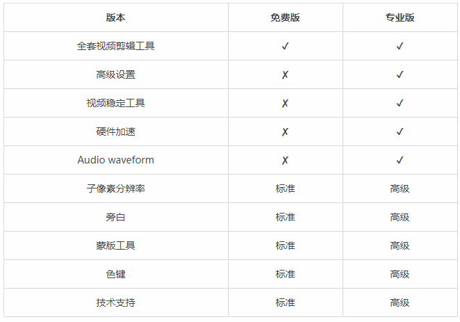 更多功能:混合模式、蒙板工具、高级多色色度键,自由变换工具、音频频谱和噪音去除......