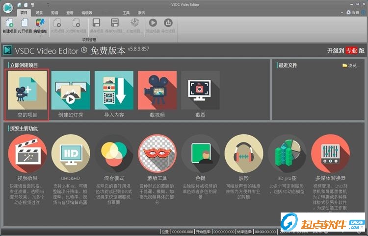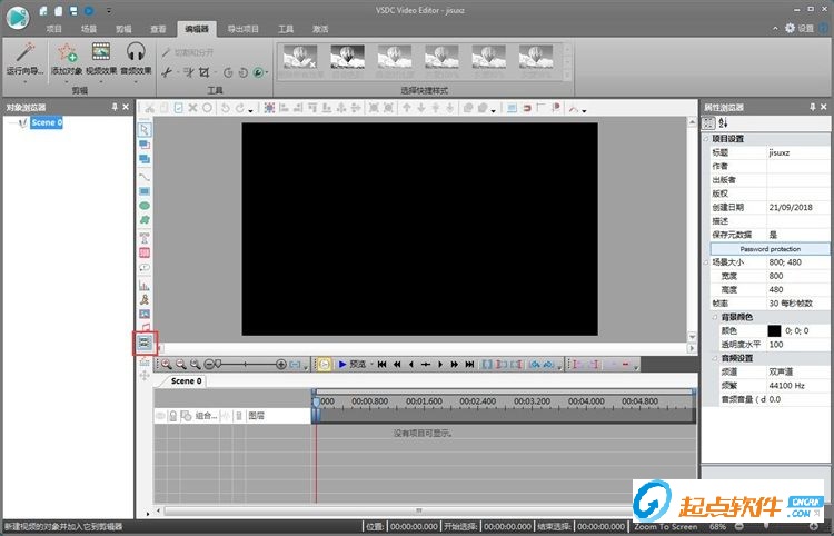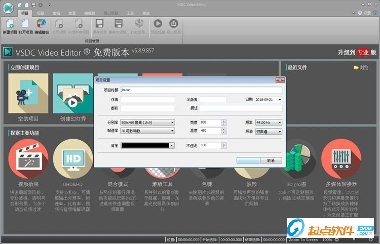 VSDC video editor调整视频画面效果演示点击软件主界面中的空的项目,打开新视频编辑项目设置窗口;