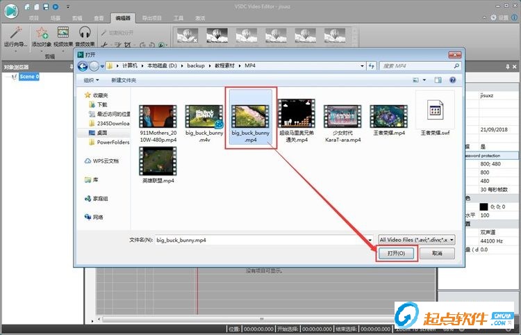 在视频浏览窗口中,根据本地视频文件的存放路径,找到想要调整画面效果的视频文件,点击选中视频后点击打开,就可以将视频导入到视频编辑区域中;
