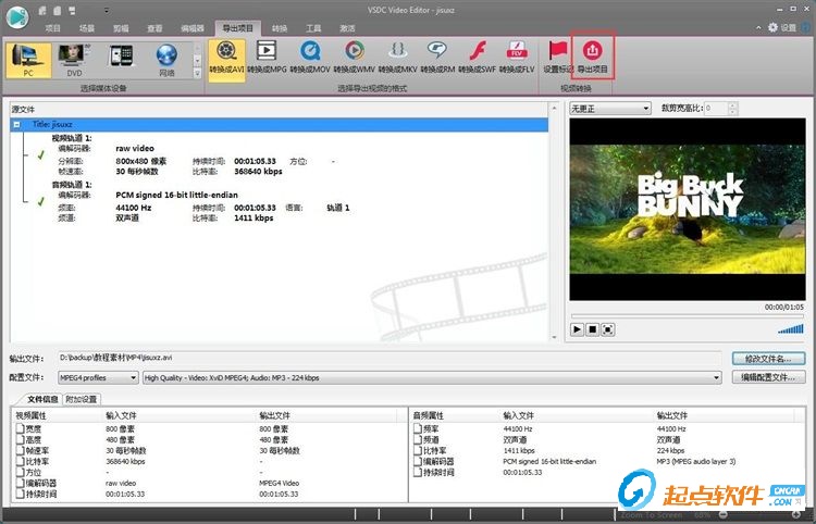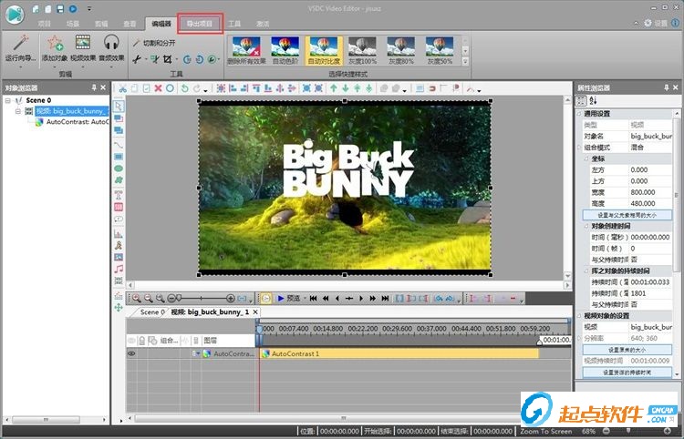 视频效果调整完成之后,我们就可以开始使用软件将调整画面效果的视频输出到本地文件夹中。点击软件主界面顶部的导出项目选项,打开视频导出选项卡;