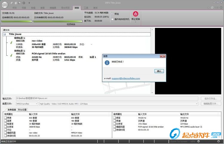 视频输出成功,这时候软件会弹窗提示转换已完成!点击确认就可以关闭弹窗,完成视频输出任务;