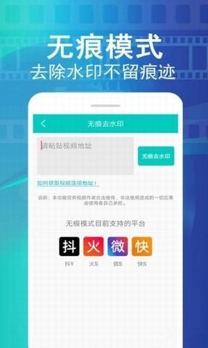 4、视频大师去水印app支持各种平台,抖音、快手、微博等软件里的视频都能去水印。