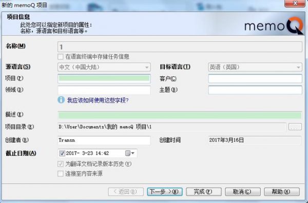 用memoQ辅助翻译的第一步当然是要新建项目。新建项目的步骤依次是:填写项目信息、导入翻译文档、记忆库、术语库,流程比Trados要简单一些。再次新建项目时,项目语言方向会默认为上次选的,也非常方便。用户创建的所有项目,都可以进行备份或还原处理,也可以导出到memoQ服务器进行协同翻译。
