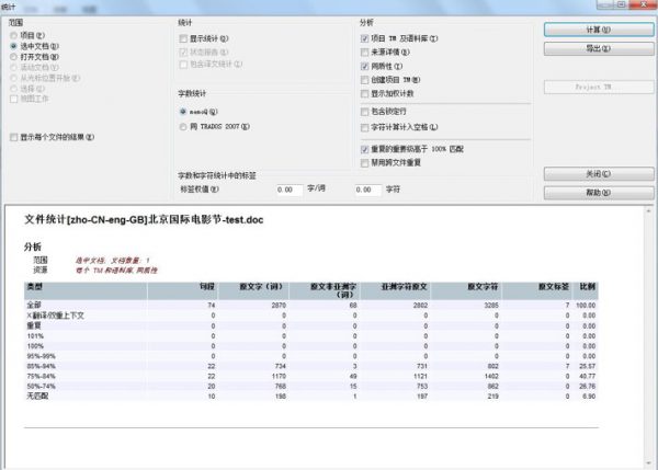 项目经理在处理项目时使用memoQ的创建视图和统计功能会方便很多,因为它们可以直接或间接反映收入的多少及项目难易程度。memoQ中对文档创建视图,可以将项目中的文档连接起来,或提取重复内容,或分割文档,这样有利于同时管理项目中的多个文档,降低重复工作成本。memoQ中统计功能则根据项目文件及语料情况等统计出项目字数、语料匹配率等并生成可供导出的报告。