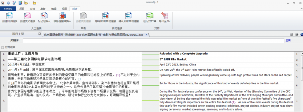 2.编辑原文:可以随时编辑原文,也可以对原文进行句段合并及分割操作。