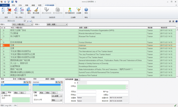 相较于Trados的术语库管理而言,memoQ的体验要好很多。界面和功能都非常清晰,很方便浏览和修改。而对单条术语进行匹配、用法、语法、图像等设置,也能有效提高术语匹配率。但是memoQ里的术语库和记忆库一样不方便查找,用过滤器筛选出的结果并不准确。 memoQ支持CSV/TSV/TMX/EXCEL/Multiterm/TBX格式术语库导入,支持CSV/ Multiterm 格式导出。