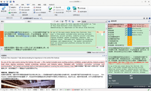 -支持常用格式的术语和记忆库导入导出,集成很多机器翻译插件,这比Trados要开放很多。利用语料管理功能制作记忆库,操作简单。-翻译时可实时预览,不会因文章被切分为句段而影响语境,同时也更容易掌控翻译进度。
