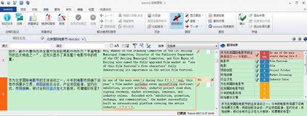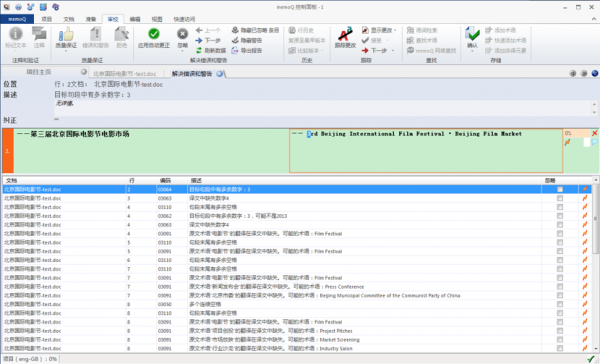 翻译完的稿件一般都要进行审校,以确保达到可交付标准。memoQ可以进行双语审校和单语审校。审校时运行质量保证QA,可以根据错误警告进行修改。当然审校人员也可以直接跟踪更改,若选择显示更改,则每一处修改过的地方都会有提示。审校完成以后将更改导出至word,也能清楚地看到文档中有哪些地方进行了更改。