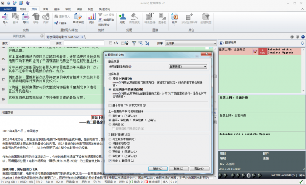 X翻译和Trados的PerfectMatch功能是类似,适合项目文件有更新的情况,具体操作步骤是:先在翻译视图中选中一个文件,点击“重新导入”,导入新版本的文档后点击“X-翻译”,根据需要更新。