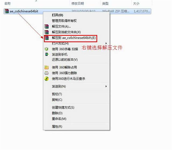 首先把我们下载的Adobe After Effects cs6【AE CS6】文件包解压出来。