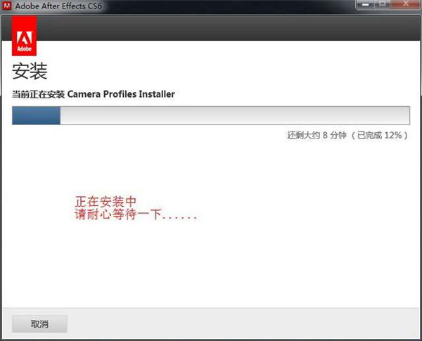 正在安装Adobe After Effects cs6【AE CS6】,请耐心等待一下。