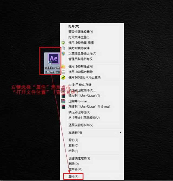 右键选择“属性”在点击“打开文件位置(查找目标)”。