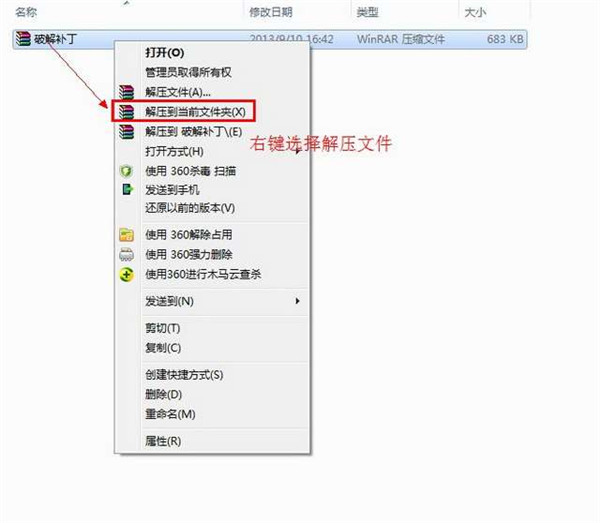 在我们解压出来的文件里面找到“破解补丁”双击打开。