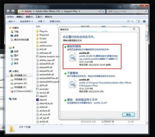 把“amtlib.dll”文件复制到我们刚刚打开软件的安装目录“安装路径”里面。