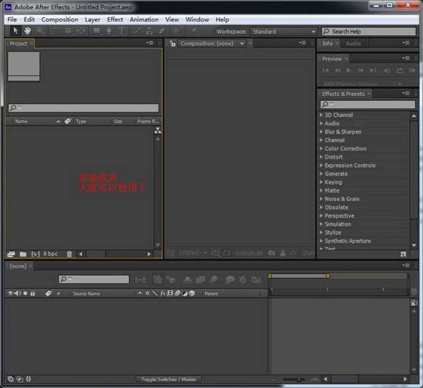 这样我们的Adobe After Effects cs6【AE CS6】就按照成功了,大家可以使用了。