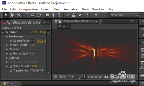 最后安装完成,打开AE,在特效里面可以看到 Shine了。