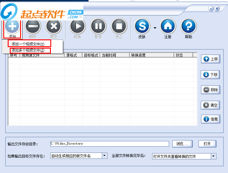 2、我们点击“添加”按钮,然后即可添加一个或多个视频文件。